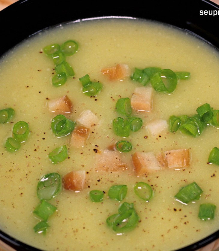 Esta receita de creme de alho-poró e couve-flor é leve, saborosa, nutritiva, sem óleo e sem lactose. É fácil de preparar, está pronta em 35 minutos, é uma ótima alternativa para pessoas muito ocupadas! Sirva com bacon vegetal, cebolinha e o tempero da sua preferência. Uma ótima opção para um jantar leve e reconfortante. Experimente!