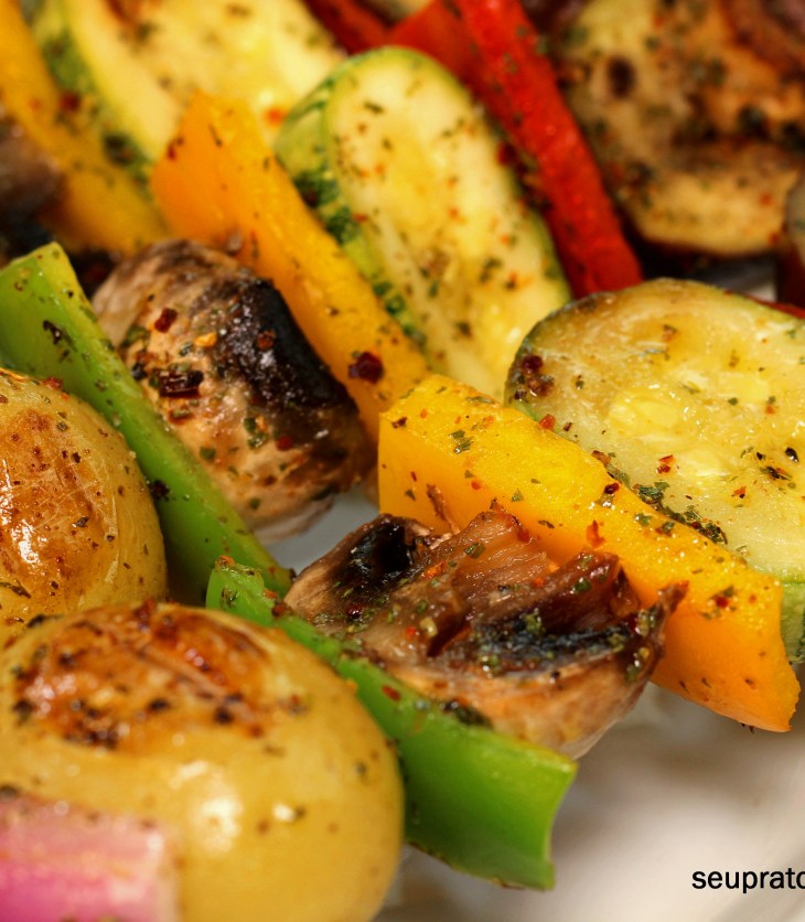 Procurando ideias para um churrasco mais saudável, sem toda essa gordureba? Esta receita de espetinhos de vegetais é uma ótima opção, pode ser feito na grelha ou na churrasqueira e o sabor vai te surpreender. Confira a receita!