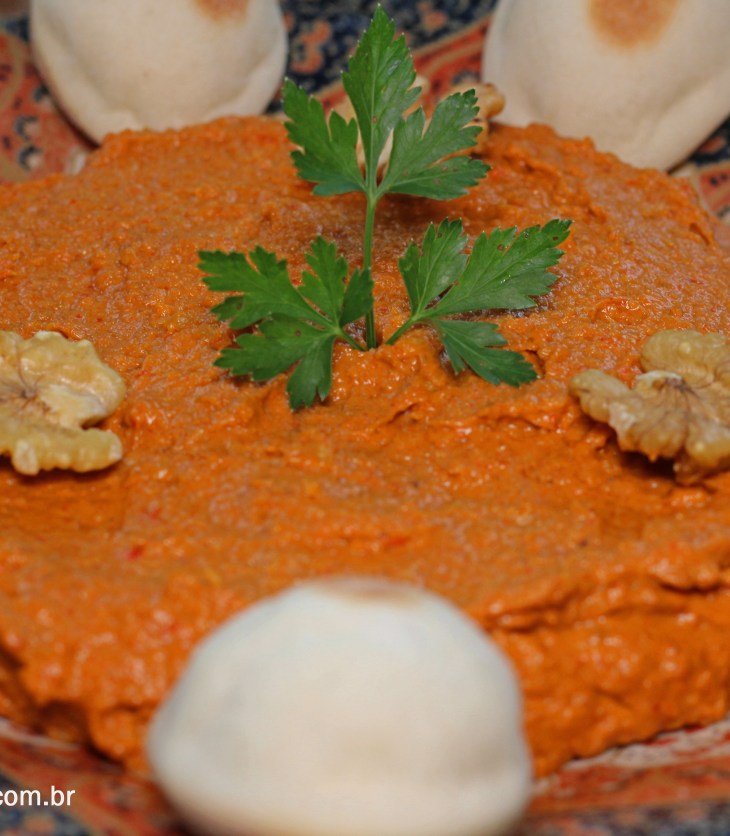 Muhammara é basicamente um creme feito de nozes torradas e pimentão vermelho assado que se originou na cidade Síria de Aleppo. É um prato delicioso porem calórico, que deve ser degustado com moderação. Guarde a receita para uma ocasião especial!